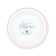 Elegance Plate 6.25" White + 2 Lines Stamp Rose Gold - 12 is backordered and will ship as soon as it is back in stock.