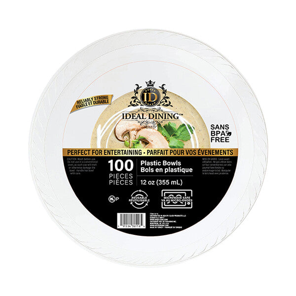 Ideal Dining Plastic Bowl 12oz White 100CT 1.54 lb